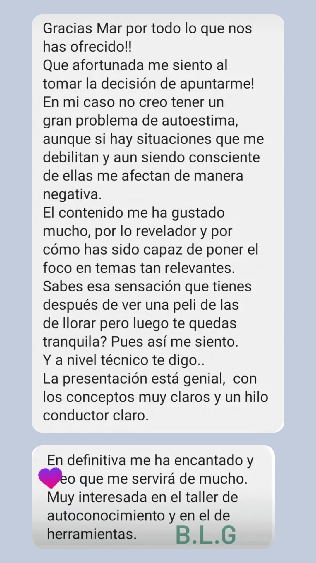 90 minutos contigo misma, guiados, con alguien que lleva años trabajando esto. Sin relleno, sin teoría innecesaria. Y con grabación para volver cuando lo necesites.